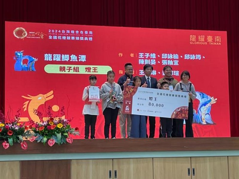 初試啼聲就勇奪親子組燈王的南市大灣國小校長陳建銘表示,師生作品「龍躍鯽魚潭」,花燈象徵對大灣地區環境、文化、歷史的尊敬。透過藝術和創意激發對環境、文化的尊敬,追求更美好未來。