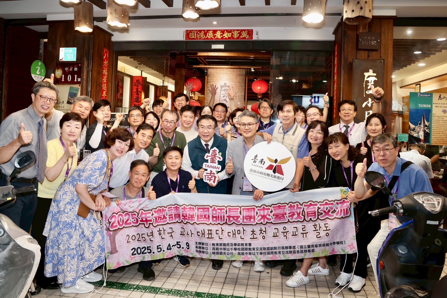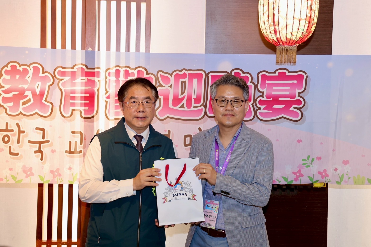 為深化台韓教育交流與合作,台南市政府與教育部高級中等以下學校國際教育交流聯盟於今(5)日熱情接待韓國教育旅行師長參訪團一行20人蒞臨台南。參訪團由大邱廣域市教育廳代表及韓國各級中小學校長組成,盼深化雙邊教育與文化交流。台南市長黃偉哲傍晚特別到場向來訪貴賓致意,並致贈具台南特色的伴手禮,展現市府推動國際教育旅行的積極作為與誠摯歡迎。