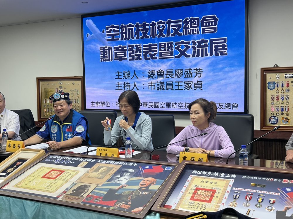 【記者田進山/台南報導】空軍航空技術學院校友總會,紀念抗戰勝利80週年,執行國軍退除役官兵輔導員會計畫,主辦勳獎章交流展,(今)假臺南市議會召開記者會,邀請市議員王家貞、林美燕蒞臨指導見證,承先啟後,綻放勝利光芒。