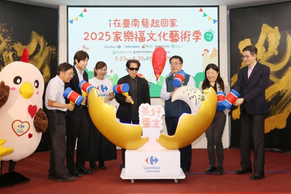「2025家樂福文化藝術季」即將在 5月23日至25 日在新營體育園區登場,為民眾帶來三大國家級團隊接力演出的夜戲、精采不斷電的在地團隊日戲演出、集合環保概念的上百攤市集、永續玩偶大遊行、以「美好蛋生」為主題的展覽及千人立蛋挑戰等活動。夜戲團隊包括「十鼓擊樂團」、「即將成真火舞團」、「紙風車劇團」