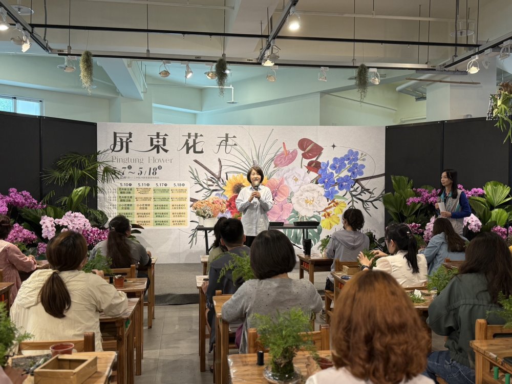 屏東縣政府農業處表示,屏東物產館舉辦農饗樂市集暨產地餐桌系列活動,並結合二樓本月的主題特展,打造一場清新繽紛市集盛會,活動現場不僅集結在地特色小農、花卉業者與特色美食攤位,更規劃「母親節主題花束製作」、「果凍花DIY」等手作體驗活動,讓親子家庭可在節日共同製作充滿心意的花藝禮物。