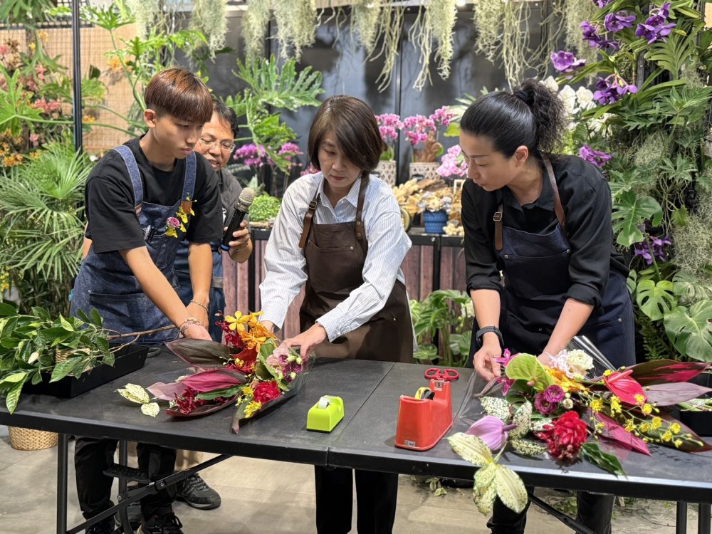 活動由周縣長率先前往二樓參觀屏東花卉生活美學展,在花卉主題展區中感受各式花藝布置所帶來的生活美學氛圍,並挑選花材與花藝老師一同製作母親節花束,感受手作花禮的溫馨祝福。周縣長表示,屏東是孕育花卉的重要產地,除蘭花佔全台生產量的二分之一外,鹽埔、長治也孕育文心蘭、火鶴等各類花品,透過屏東物產館的展出,讓民眾看到屏東花卉精采的成果,活動從5月10日至5月18日(週一、二休館)開放為期10天,請大家抓緊時間前往觀賞。