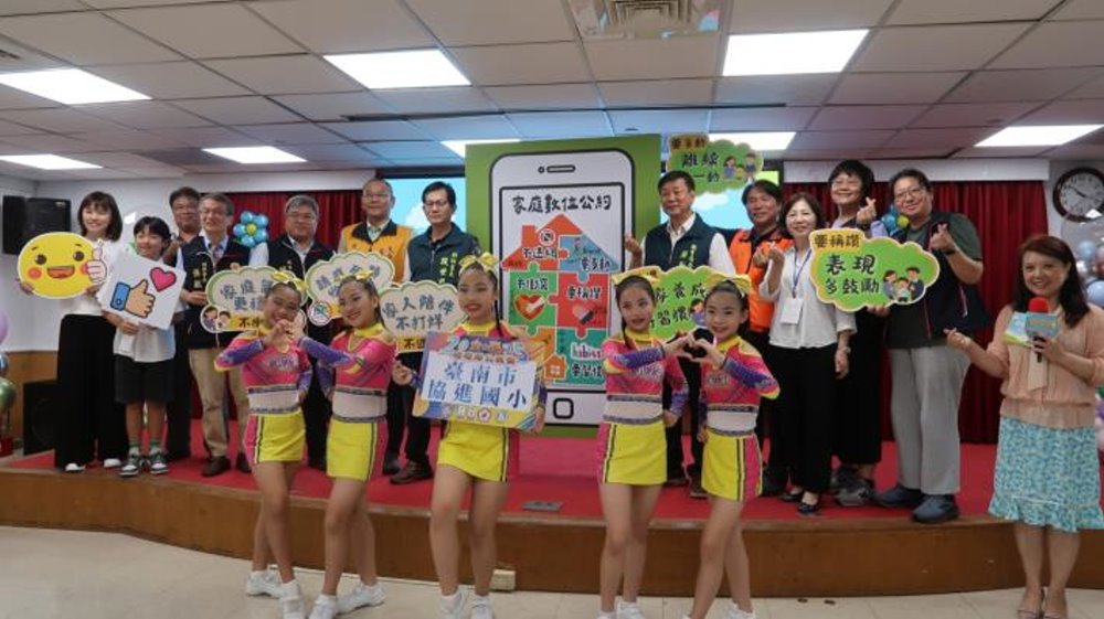【記者王榮輝/台南報導】為響應5月15日國際家庭日,臺南市家庭教育中心推出「找回親子時光」短片,於今(14)日舉辦影片發布記者會,內容聚焦在親子共處時手機使用的議題,透過「三不三要」口訣短影音,提醒家長關注孩子的網路使用情況,並鼓勵親子共同訂立「家庭數位公約」,預防網路沉迷問題,一起建立健康、自律的網路使用習慣,重新找回生活中真實、有溫度的親子互動。市府副秘書長殷世熙代表市長黃偉哲偕同教育局長鄭新輝與家長團體代表在會中共同簽署家庭數位公約。