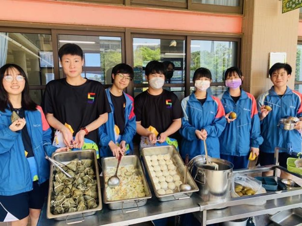 南新國中以金榜題名為主軸設計「包高中」午餐菜單,粽子象徵「包中」;好彩頭鮮筍蘿蔔羹湯代表「節節高升、好運連連」,香酥棒棒腿象徵「一舉成功」。整套餐點不僅美味更考慮營養均衡,幫助考生在備考期間補充能量、提振精神,也蘊含了廚房團隊滿滿的祝福,祈求每位學子順利考取理想成績。