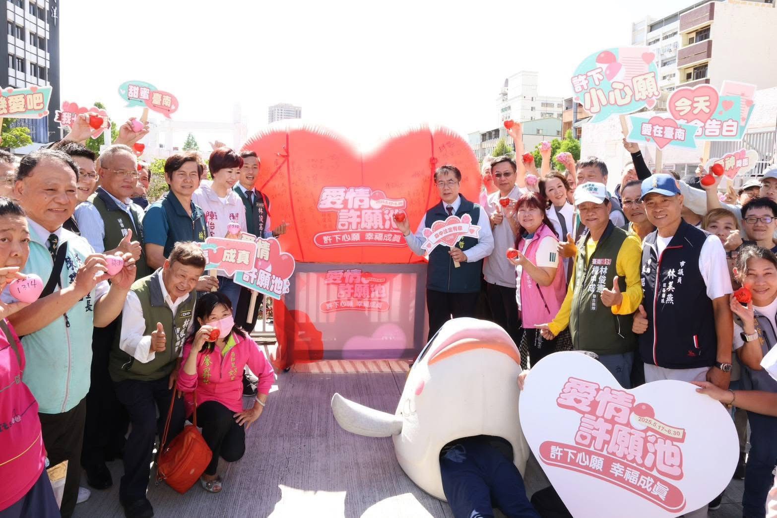 為迎接520「我愛你」的浪漫氛圍,台南市政府今(17)日於河樂廣場正式啟動「愛情許願池」活動