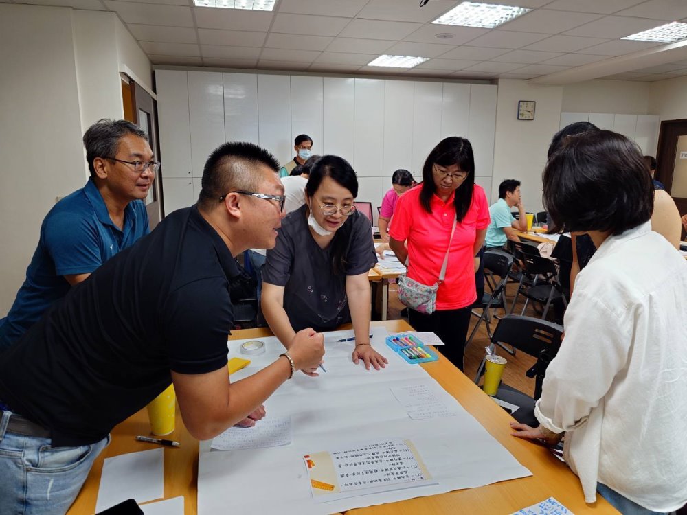 在「世界咖啡館」環節,各基地班根據小組討論結果製作重點海報,並由多位關主輪流向其他組別導覽與交流。透過跨組輪動與深度對話,教師夥伴得以激盪課程設計靈感,探索教學實踐與社群運作的多元可能。