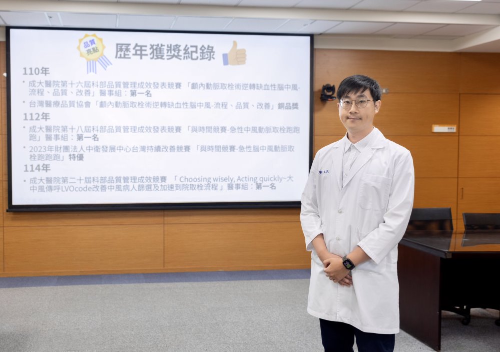 成大醫院中風中心近年持續優化流程,提升溶栓率與取栓速度,多次獲得醫策會照護品質認證及品質獎項肯定。