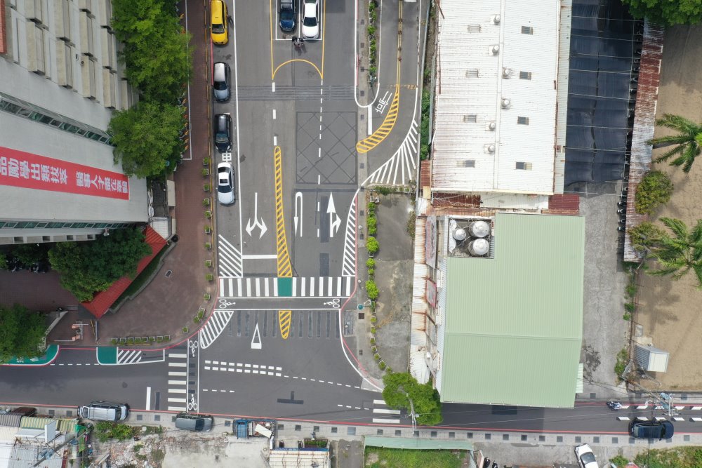 局長王銘德說,本次中華醫事科技大學校大門口優化設計係將校園出入道路空間重新配置,除劃分行駛車道及停車彎外,並考量校門口車輛迴轉需求配置迴轉車道;路口透過轉角外推一併調整行穿線位置,縮短行人穿越路口距離,並繪設分向槽化兼行人庇護島,強化行人通行動線及庇護空間,亦可降低轉向車輛速度;另也同步兼顧騎乘自行車通學勤用路安全,於路口處繪設自行車穿越道線。