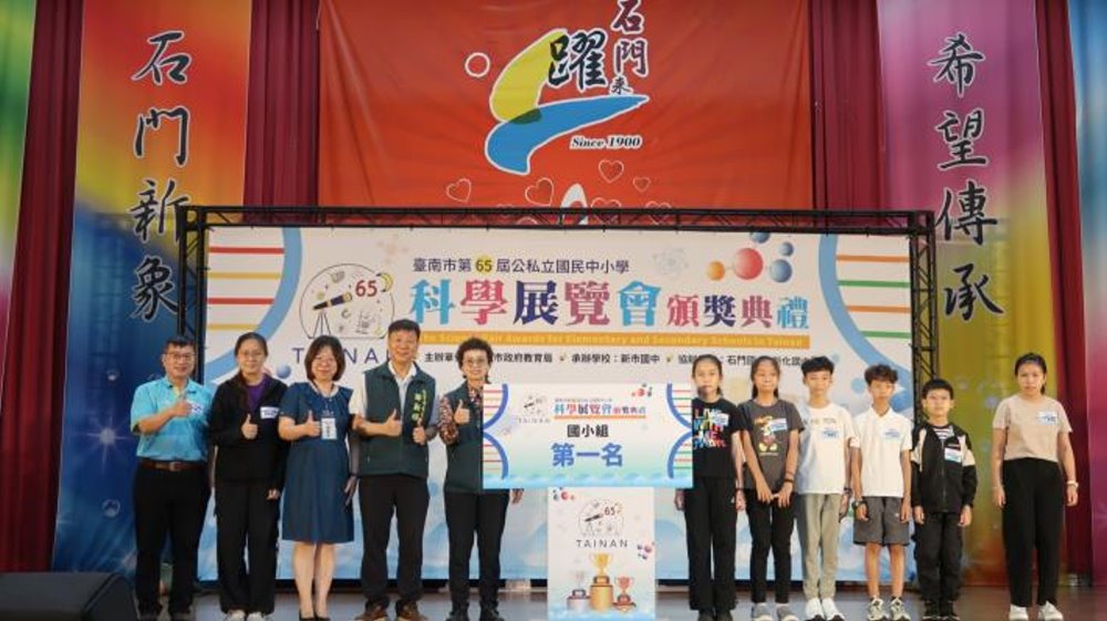 【記者陳岑博/台南報導】台南市第65屆公私立國民中小學科學展覽會頒獎典禮今(5)日於石門國小隆重舉行,由副市長趙卿惠代表市長黃偉哲出席,向所有獲獎學生及指導師長表達誠摯的恭賀與感謝。今年科展共計237件作品參展,經過嚴謹評審後,共有140件作品脫穎而出,其中17件第一名作品將代表參加7月的全國科展,展現臺南學子旺盛的探究精神與創新實力。