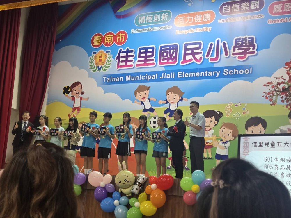 佳里區佳里國小第119屆畢業典禮熱鬧登場,家長不畏風雨到場祝福與期勉。