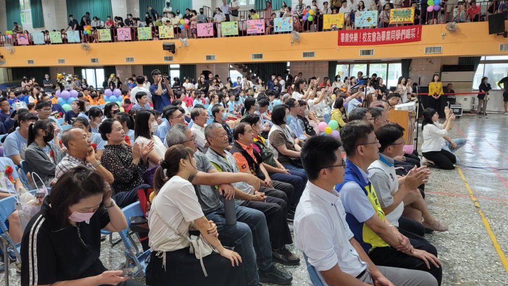 本次典禮活動援例頒發畢業證書、市長優學獎、語文獎、體育優良獎、科技獎、藝術獎、嘉行獎、勵志獎、議長獎、區長獎、家長會長獎、校長獎、校友會長獎及來賓獎與全勤獎等等獎項,受獎的同學均充滿歡喜上台領獎並與頒獎來賓合照,留下美麗的倩影及印記。