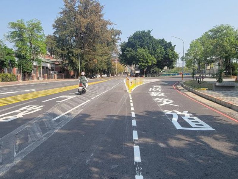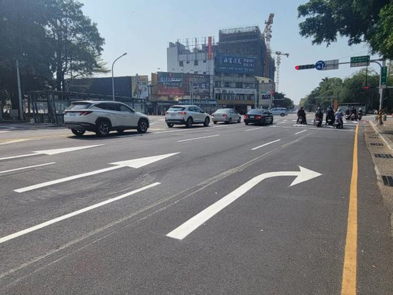 台南市北門路二段標線改造,提升交通安全(記者陳岑博攝)