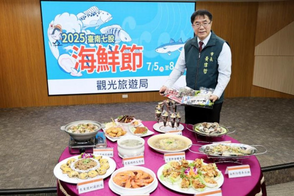 台南市長黃偉哲今(19)日出席活動宣傳記者會表示,台南七股海鮮節歷史悠久,從最初的「七股海鮮街」歷經物換星移變成今天的海鮮節,讓參加民眾品嚐到最新鮮豐富的水產品,CP值最高,系列活動每年開放報名熱烈,就連市長都沒有特權先搶,呼籲民眾把握報名時間點,一起來參與海鮮盛事。