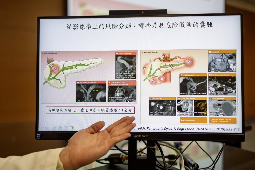 成大醫院胃腸肝膽科王堯生醫師表示,隨著健康檢查普及,越來越多民眾在無症狀情況下,透過腹部超音波發現胰臟囊腫。多數囊腫為良性,但部分可能具有癌變潛力,需進一步釐清囊腫的性質、大小、是否具高風險影像特徵,以及病人整體健康狀況,以安排個別化後續處置。