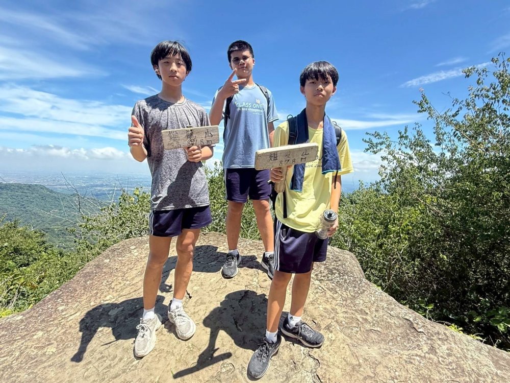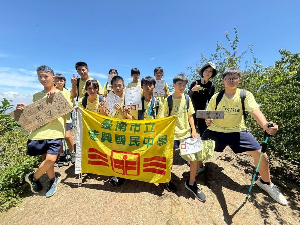 台南市佳興國中師生舉辦環境生態教育,勇登關子嶺雞籠山,展現好體能。