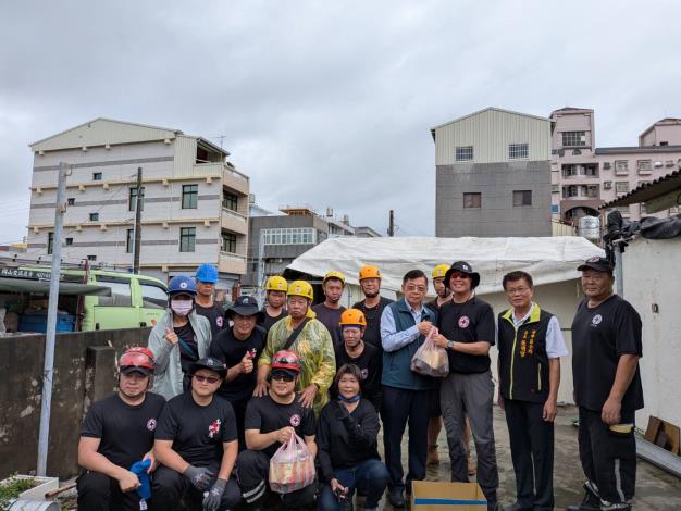 民政局長姜淋煌於離開三慶里前,恰逢中華一貫道全球總會總會長謝遠智到場關心災民生活狀況及發放愛心物資,表達對受災戶的深切慰問。姜局長亦對民間團體在災後迅速伸出援手表達感佩,強調有各界攜手協助,希能讓災區早日恢復正常生活。