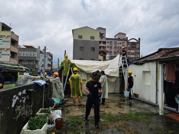 今日上午救援行動由高雄市義消總隊特種搜救大隊、新高雄紅十字會、中華戶外探險協會、高雄市紅十字會合計27名人員協助,下午則有雲林義消9人加入協助任務,完成學甲區內慈福里、仁得里、秀昌里、新榮里、新達里計13戶弱勢戶帆布搭設作業,進度順利。災民見到住家屋頂終於獲得協助,紛紛表達感謝之情,直呼「終於有人來幫忙了,真的非常感恩!」