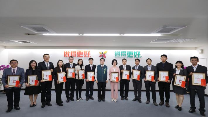 【記者黃雅愉/台南報導】臺南市長黃偉哲於15日市政會議中親自頒獎表揚15名市府模範公務人員,每位受獎者獲頒獎狀一幀及獎金5萬元,並給予公假5天,以肯定及鼓勵其在工作崗位上之傑出表現。並感謝他們展現專業與熱忱,實踐「以民為本、服務至上」的施政理念。