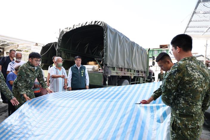 台南市長黃偉哲今(18)日前往鹽水區視察災後復原進度,探視協助救災的國軍、志工與災後臨時工人力,逐一致意並表達感謝之意。期間也於公所聆聽多位民眾反映風災帶來的實際困境,現場指示相關單位儘速協助。