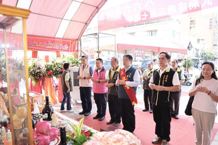 圖:台南市長黃偉哲赴鹽水慰勞人員並參與武廟祝壽大典祈福(記者陳岑博攝)
