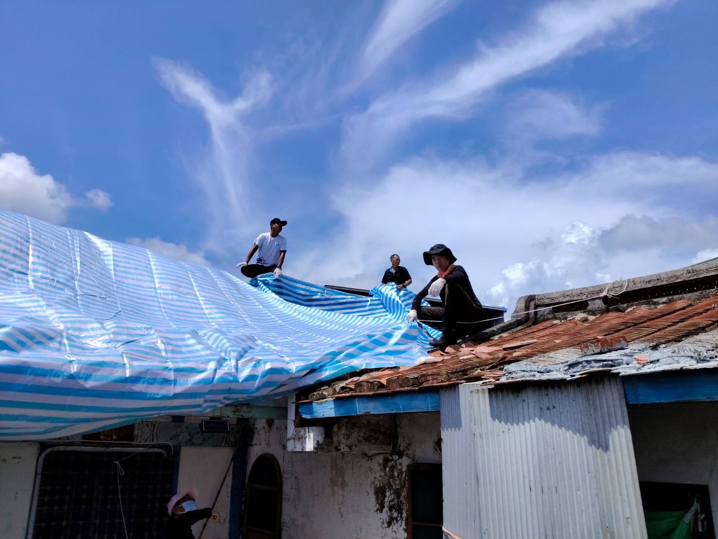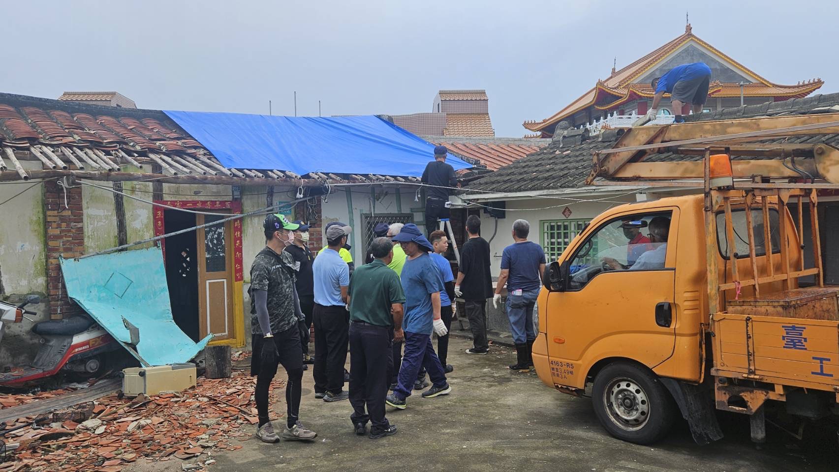 圖:善化分局民力至災區協助災後復建蓋屋頂帆布