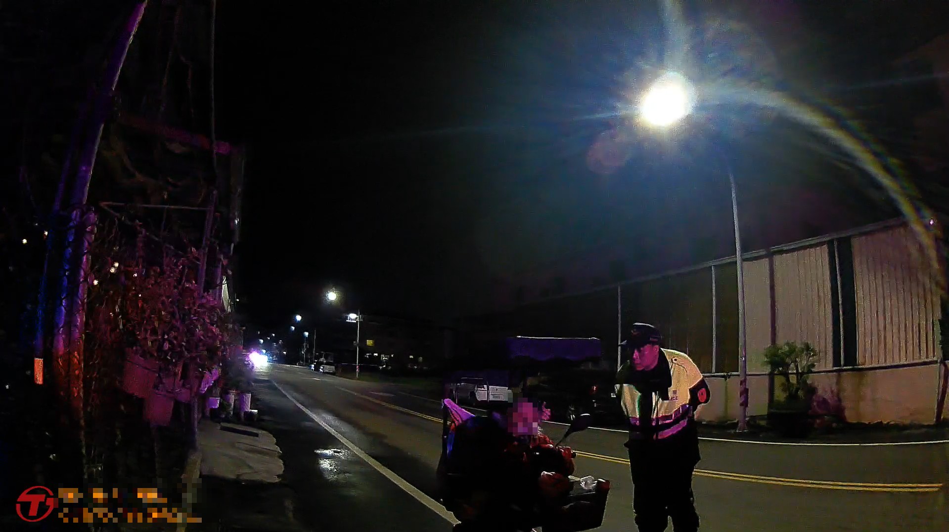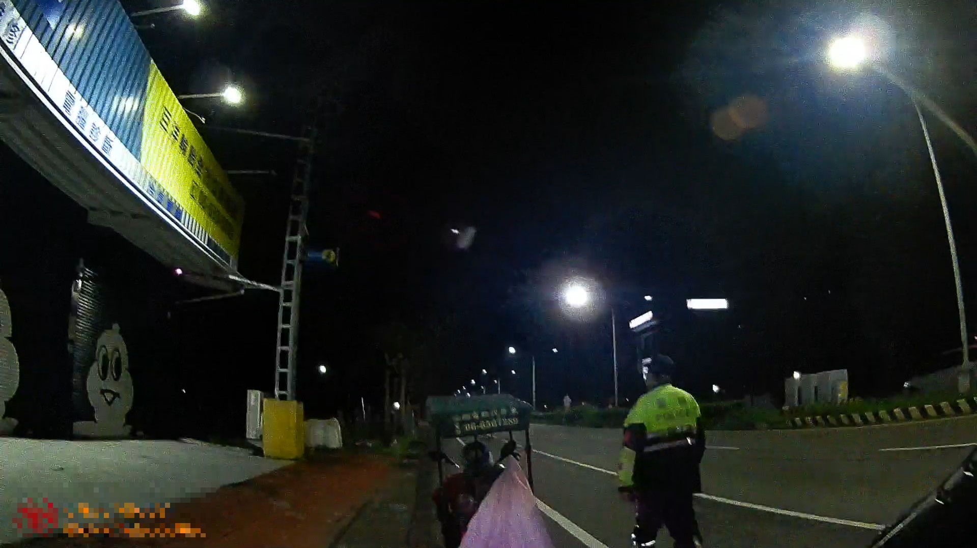 圖:新營警開車燈護送迷途88歲失智婦到家