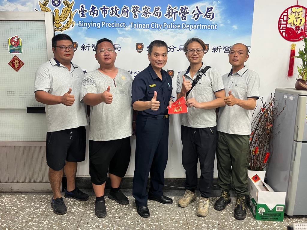 新營區土庫巡守隊隊長陳柏志帶領隊員等4人在新營區台糖中興車站一帶發現該名男子後,通知中山路派出所員警包盛仁及余冠宏到場,包員發現男子身上帶傷且情緒不穩,遂再通知所長柯政安、警員胡凱銘、林庭皓、楊勝閎、施品豪及民治派出所巡佐蕭志寶與警員張晉豪到場支援,該名男子當場情緒激動叫嚷不要員警靠近,員警及巡守隊員在場保護男子避免有過激行為,最終給予情緒安撫後,男子終於在父母陪同下平安搭乘救護車就醫。