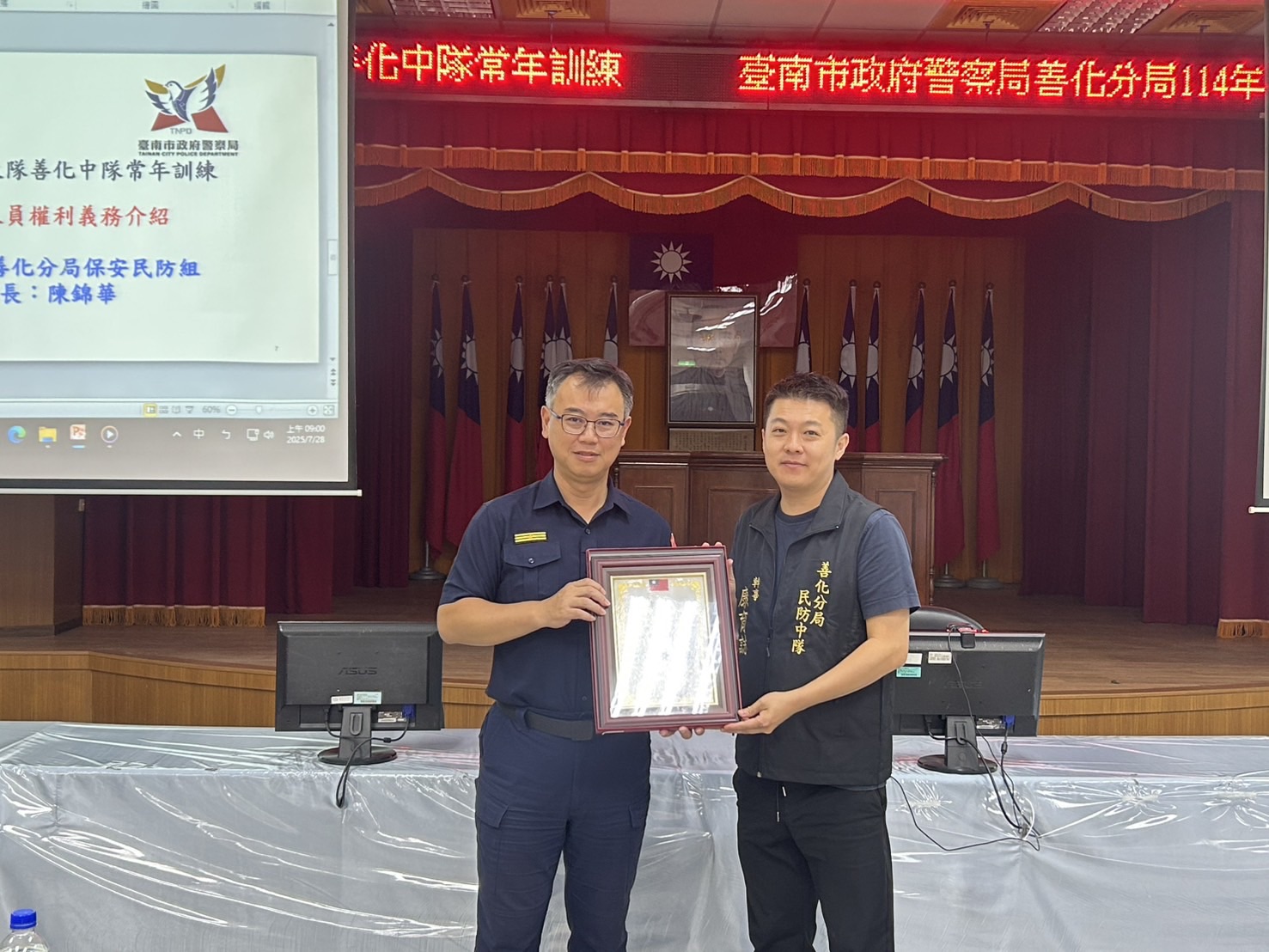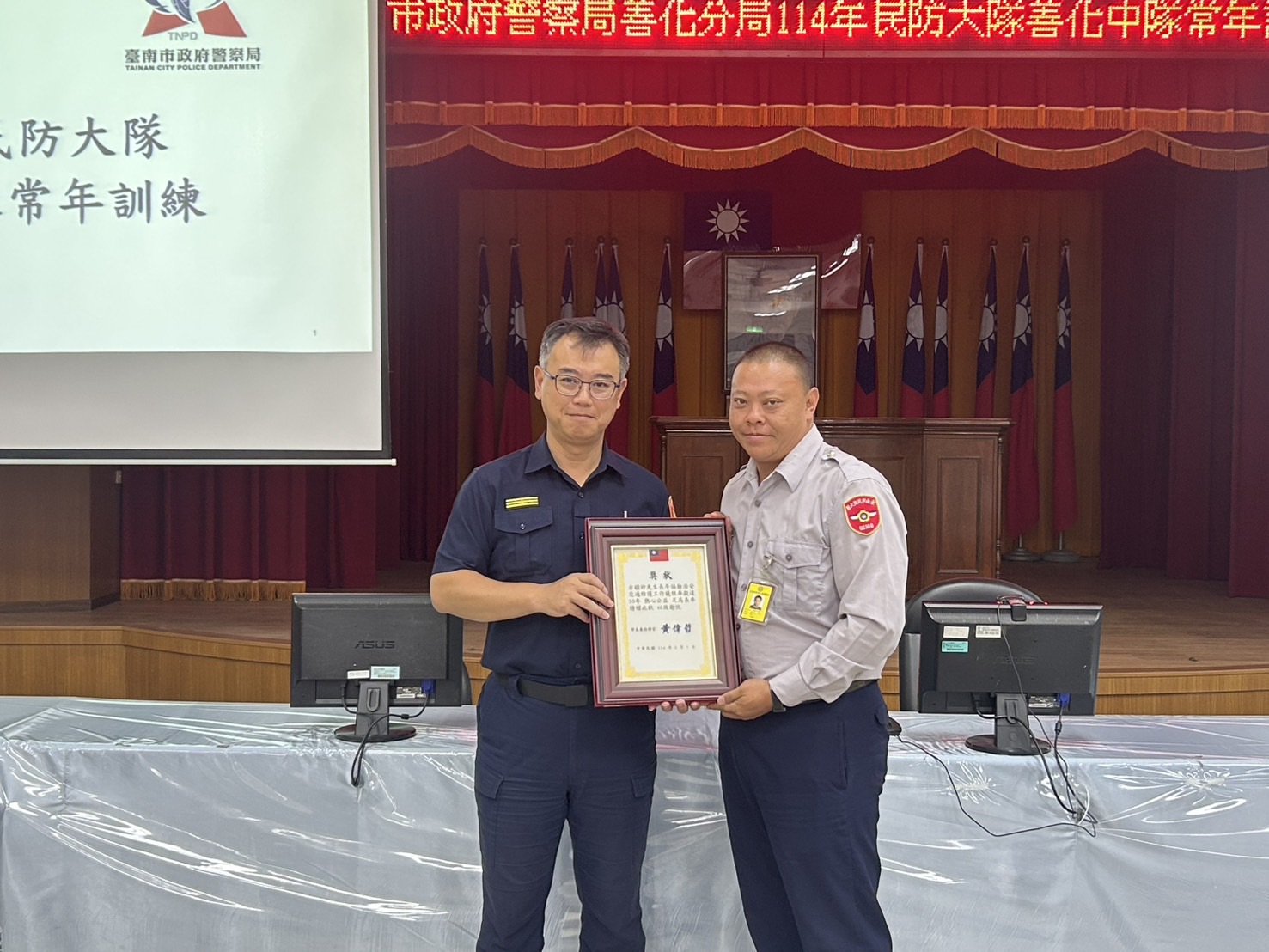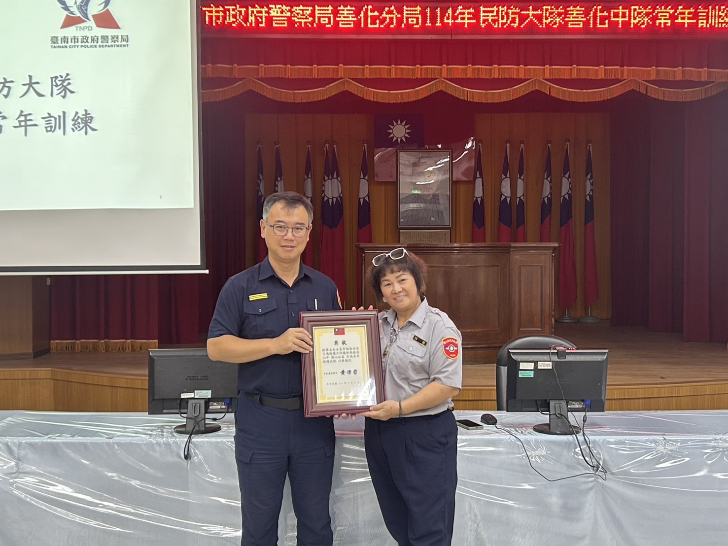 圖: 善化警分局民防常訓並表揚資深民防人員