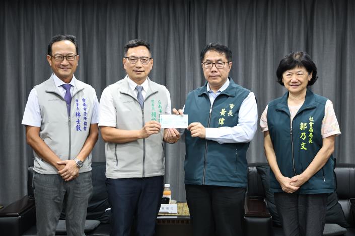 【記者黃石泉/台南報導】丹娜絲颱風近日重創南部,強風豪雨造成台南多處受災。市府第一時間即動員各項人力與資源,全力投入災後復原與重建,為市民早日恢復正常生活。台南市醫師公會為響應賑災行動,特別捐贈新台幣230萬元予台南市政府,盼能協助災區民眾度過難關、重建家園。今(31)日下午市府於永華市政中心2樓貴賓室舉行捐贈儀式,由市長黃偉哲代表受贈,並頒發感謝狀感謝公會的善行義舉。