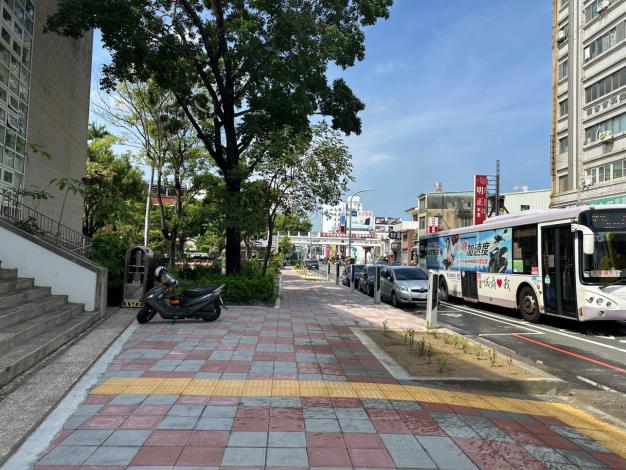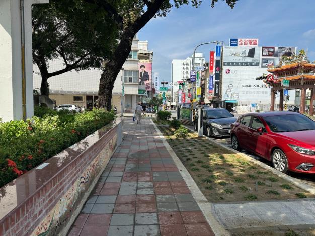 在這項市政建設中,公園國小是其中一所受益學校。位於市區中心的公園國小,毗鄰臺南公園、轉運站、火車站等人流密集區,交通流量大。學校周邊的通學環境一直是市府優先改善的對象,為了提升學生及行人的安全,將學校周邊步道進行全面升級,針對公園南路、北忠街與公園路等重要路口,特別加強人行道高度,確保人車分離,並重新規劃路面標線,減少交通事故的發生,為學生和用路人提供更安全的通行空間。