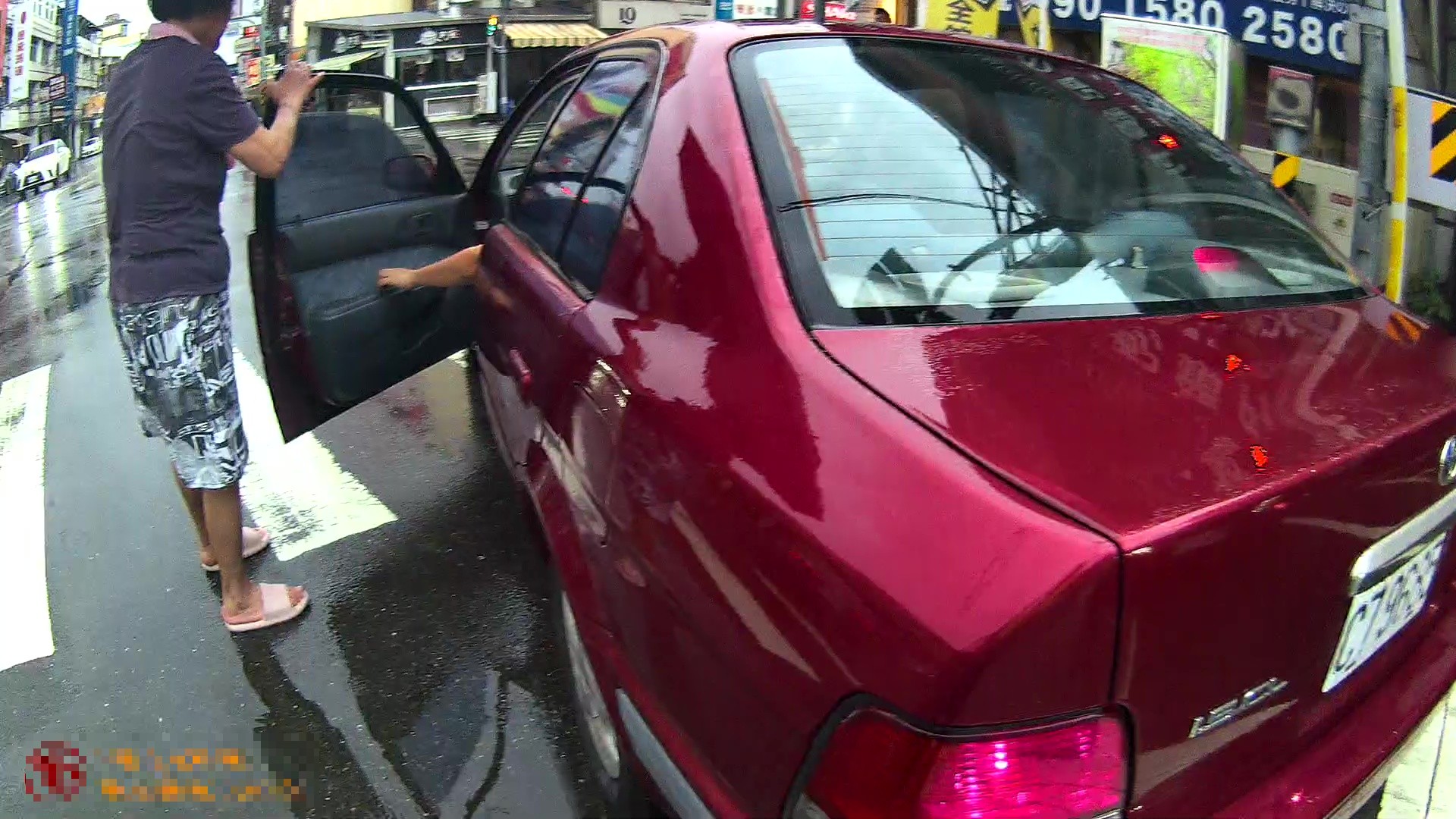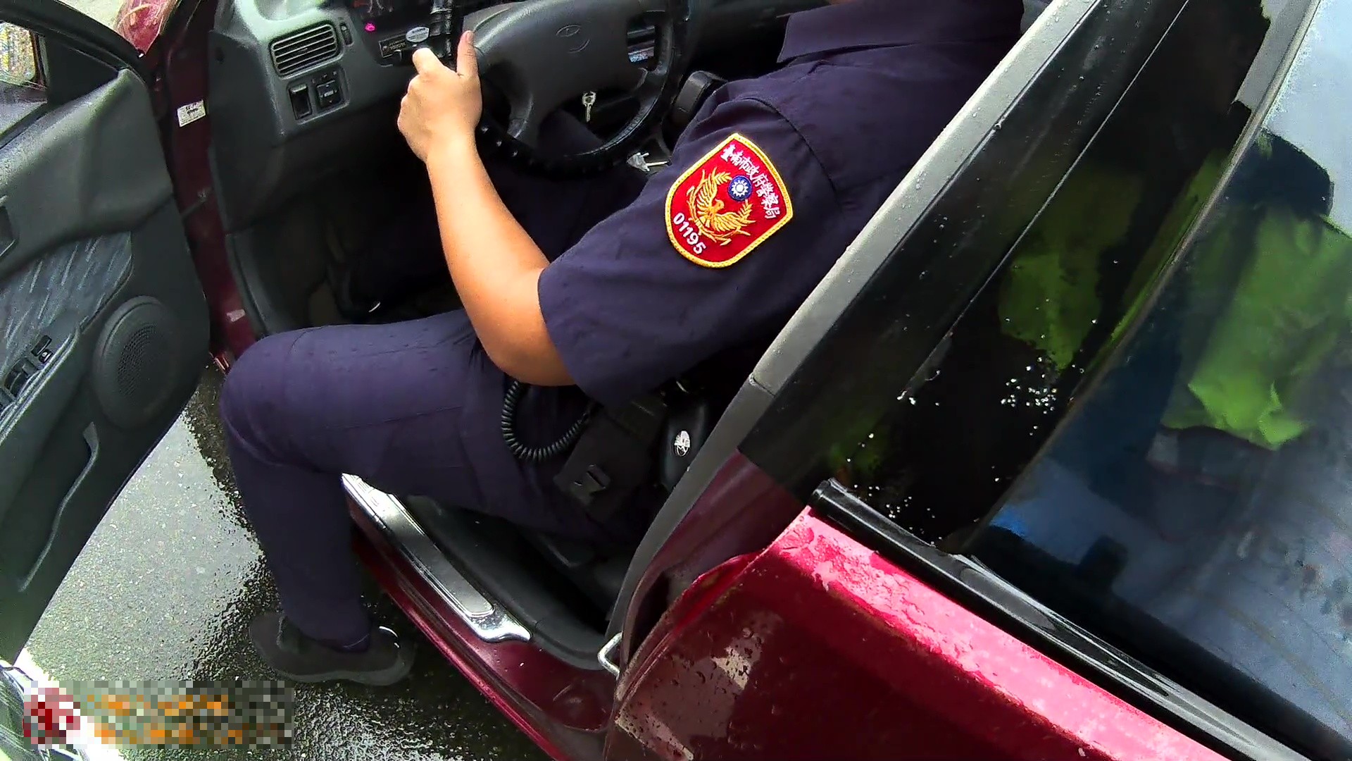 圖: 連日豪雨車輛路中拋錨新營分局民治所巡邏員警協助將車輛推至路邊安全處所