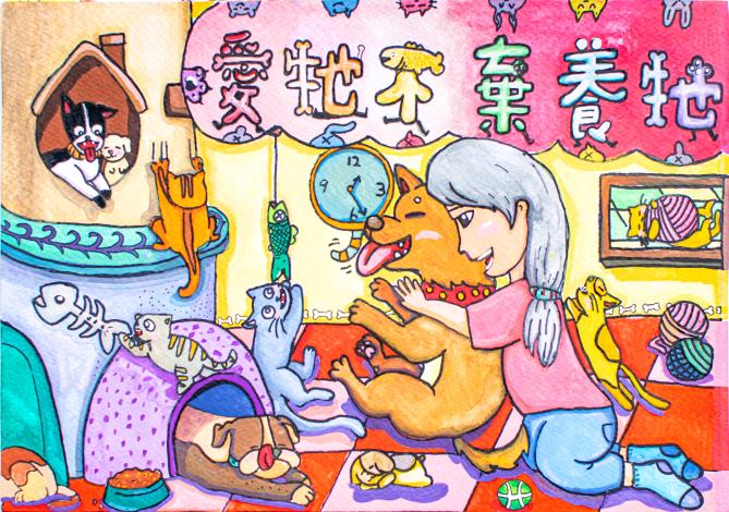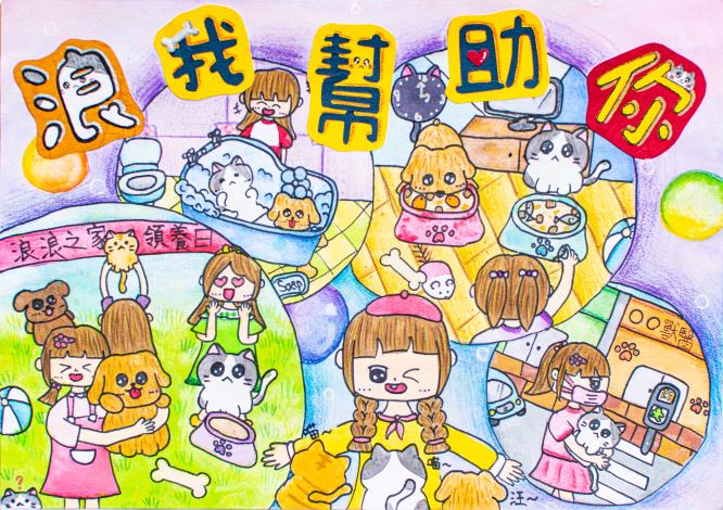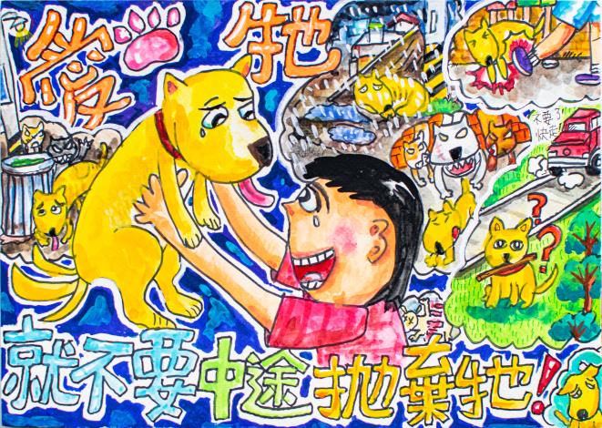 今年「浪浪語錄創意圖畫設計比賽」的12幅特優作品,其中獲國中組特優的民德國中顏瑋成同學說,雖無法認養流浪動物,但可以從關心社會上流浪動物的議題開始。獲國小中年級組特優的蓮潭國中小林禹寰同學表示,承諾是一種責任,每一個生命都值得被善待,飼養毛小孩不僅僅只靠初次相遇時的情感衝動,更重要的是一起面對未來挑戰的堅持與勇氣。獲國小高年級組特優的東光國小王淯溱同學呼籲「領養代替購買,讓牠的生命能再次充滿愛!」透過領養,不僅拯救了一條生命,也讓自己的生命更加豐富有愛。