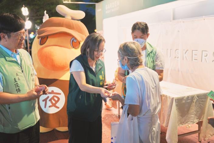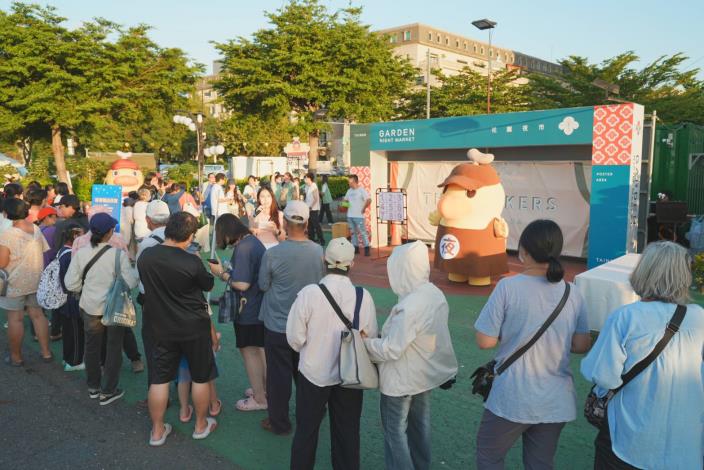 民眾於活動現場透過與「夜奇鴨」合照打卡即獲得夜奇鴨頸枕模彩券一張,前60名完成的幸運參加者更額外獲得了「籃球投準」或「九宮格投球」夜市體驗活動二選一,同時獲贈送「夜奇鴨」限量小禮,而闖關成功者還再獲得了夜市美食一份,現場民眾參與踴躍,人潮絡繹不絕,笑聲不斷,一同在「夜奇鴨」帶動下,沉浸於熱鬧的氛圍中。活動進行到一半,經發局長張婷媛驚喜現身,現場加碼發放200份50元銅板券外,更特別造訪花園夜市的5星名攤,給店家老闆們鼓勵和加持。