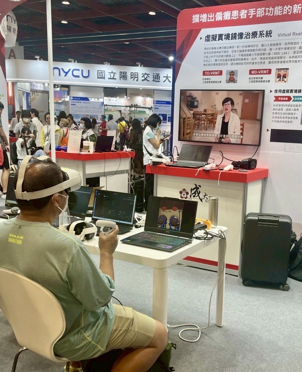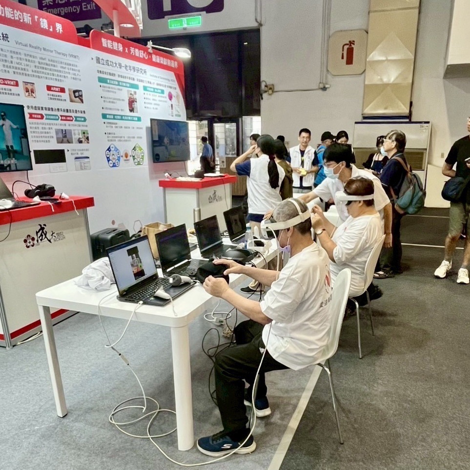 成功大學生物醫學工程研究所開發的虛擬實境鏡向治療系統(VRMT),透過沉浸式訓練激發神經可塑性,促使大腦重新學習動作與功能,提升復健成效。此外,透過動作感測與演算法,除了提升復健紀錄精準度,讓治療師可同步照護多位患者,增進康復成效與作業效率。