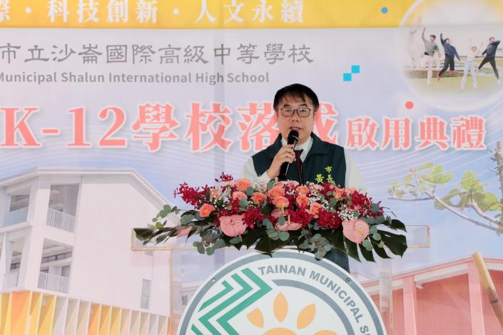 教育局長鄭新輝表示,沙崙國際高中是臺南市推動雙語K-12教學的示範學校,學校的設立是為了回應在地人口成長與國際人才子女的就學需求,更肩負著構建臺南移居、宜居環境的重任。學校在114學年度開始啟用,幼兒園、國小、國中、高中各階段別全面招生,今日的落成啟用也是軌國際教育體制、引領雙語課程實施的重要里程碑。