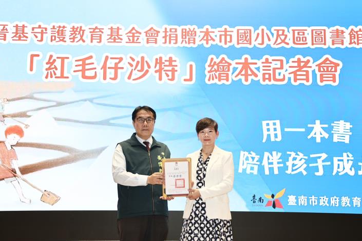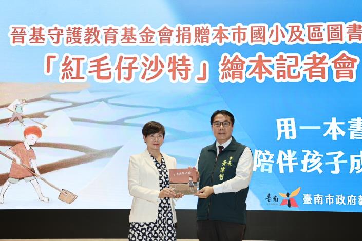 市長黃偉哲表示,閱讀是培養知識、啟發創意與深化文化認同的重要途徑,市府長年推動多元閱讀計畫,不僅提升學生的閱讀素養,更希望讓學生在書本中看見家鄉的過去、理解當下並想像未來。感謝基金會支持,製作生動活潑的繪本《紅毛仔沙特》,以井仔腳瓦盤鹽田為背景,讓學生透過閱讀,了解台南鹽業文化特色與精神,受贈的書籍將分送本市學校及圖書館,成為學生認識在地歷史、感受土地情懷的珍貴課外讀物。