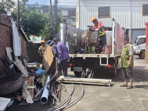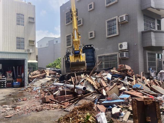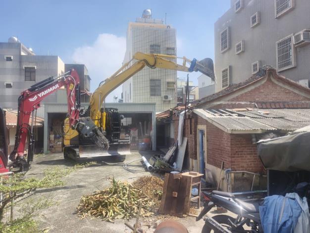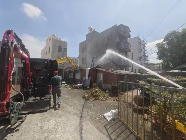 工務局表示,拆除前先行斷水斷電,隨後環保局到場,將屋內堪用的桌椅、櫃子等物品搬運回收後即展開拆除作業。拆除過程遇有些許石綿屋瓦,也經由專業拆除人員妥為處理,由環保局清運車載離,拆除過程相當順利。
