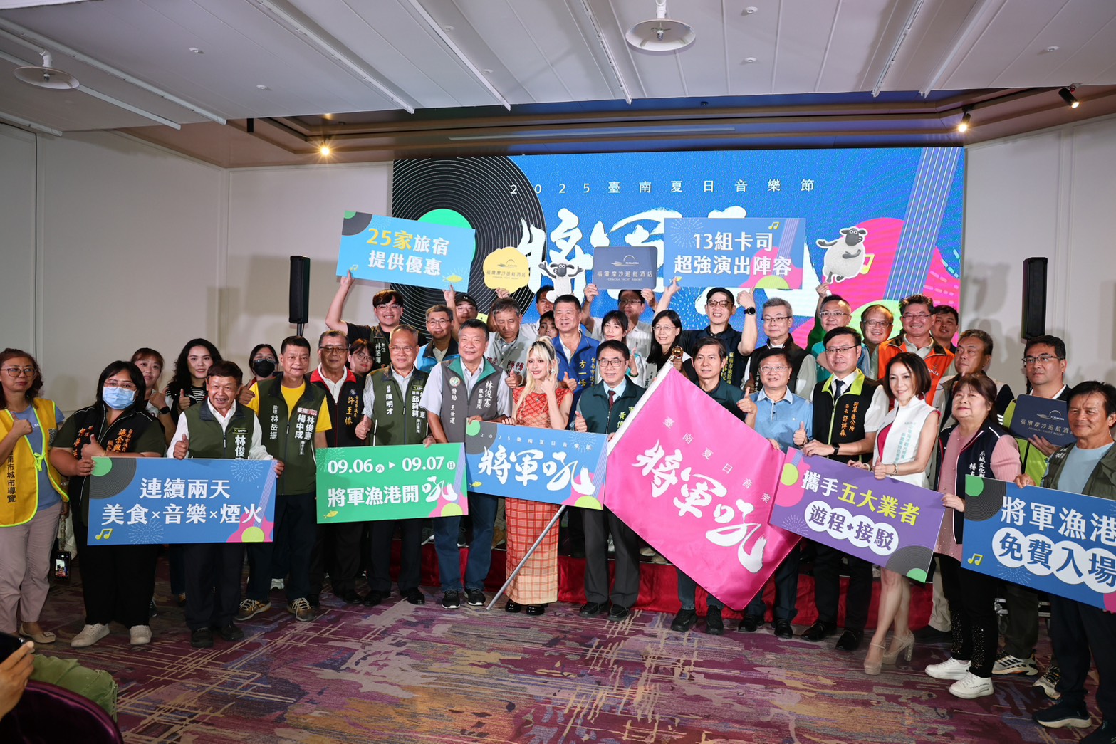 「2025台南夏日音樂節-將軍吼」,將於9月6日、7日在將軍漁港登場,今日記者會包括交通部觀光署雲嘉南濱海國家風景區管理處長徐振能、議員方一峰,以及立委林俊憲、陳亭妃服務處代表、各議員服務處代表與台南在地公協會代表等貴賓皆蒞臨