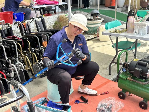 黃偉哲市長表示,輪椅(含電動輪椅)、助行器、拐杖、助步車等輔具對長輩和身心障礙朋友來說,不只是代步工具,更是他們的「第二雙腳」。風災過後,許多輔具泡水或卡滿泥沙毛髮,導致推動困難、煞車不靈敏,讓生活充滿不便,也增加了跌倒、受傷的風險。因此社會局辦理9場次災區巡迴服務,逐一深入各區協助清潔維修輔具,讓受災民眾能安心使用日常工具,逐步恢復生活秩序。
