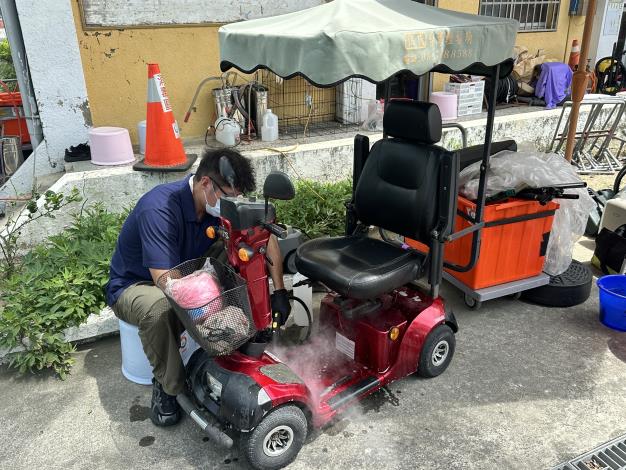圖: 台南市辦理第三場巡迴災區輔具清潔與消毒服務(記者黃石泉攝)