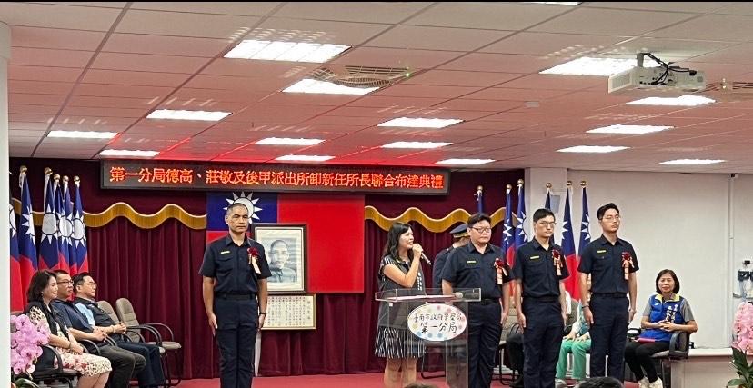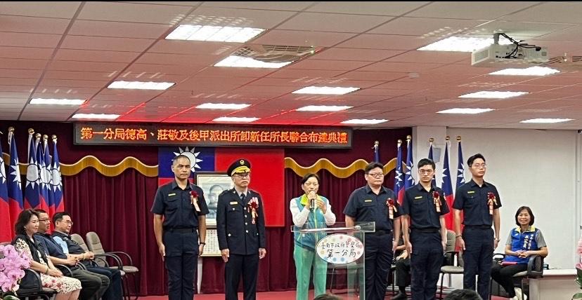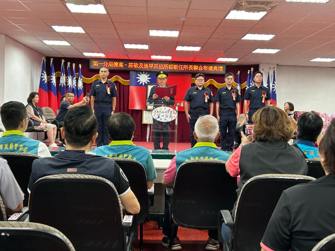 圖: 第一分局德高、莊敬、後甲派出所卸、新任所長聯合布達典禮(記者田進山攝)