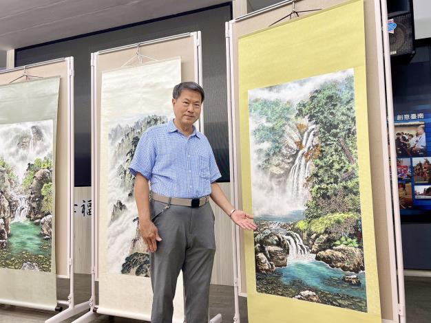 【記者黃雅愉/台南報導】市府秘書處為活化市政空間,即日起至9月29日邀請國內知水墨畫家廖仁彬師於民治中心一樓大廳辦理「大地的山韻水色」創作個展,計展出26幅創作。廖仁彬老師秉持「行萬里路」的創作精神,親身體驗山川之美,再以深厚學養將大自然的壯麗與細膩完美融合為筆墨丹青。此次個展呈現層疊岩石肌理與激流飛瀑、秋山紅葉的絢爛色彩、雲霧繚繞的高山意境,都體現了藝術家對自然景物的深度觀察與詩意詮釋。廖老師每一筆一彩都蘊含對大地的敬畏與讚美,邀請觀者感受這份來自自然的感動。