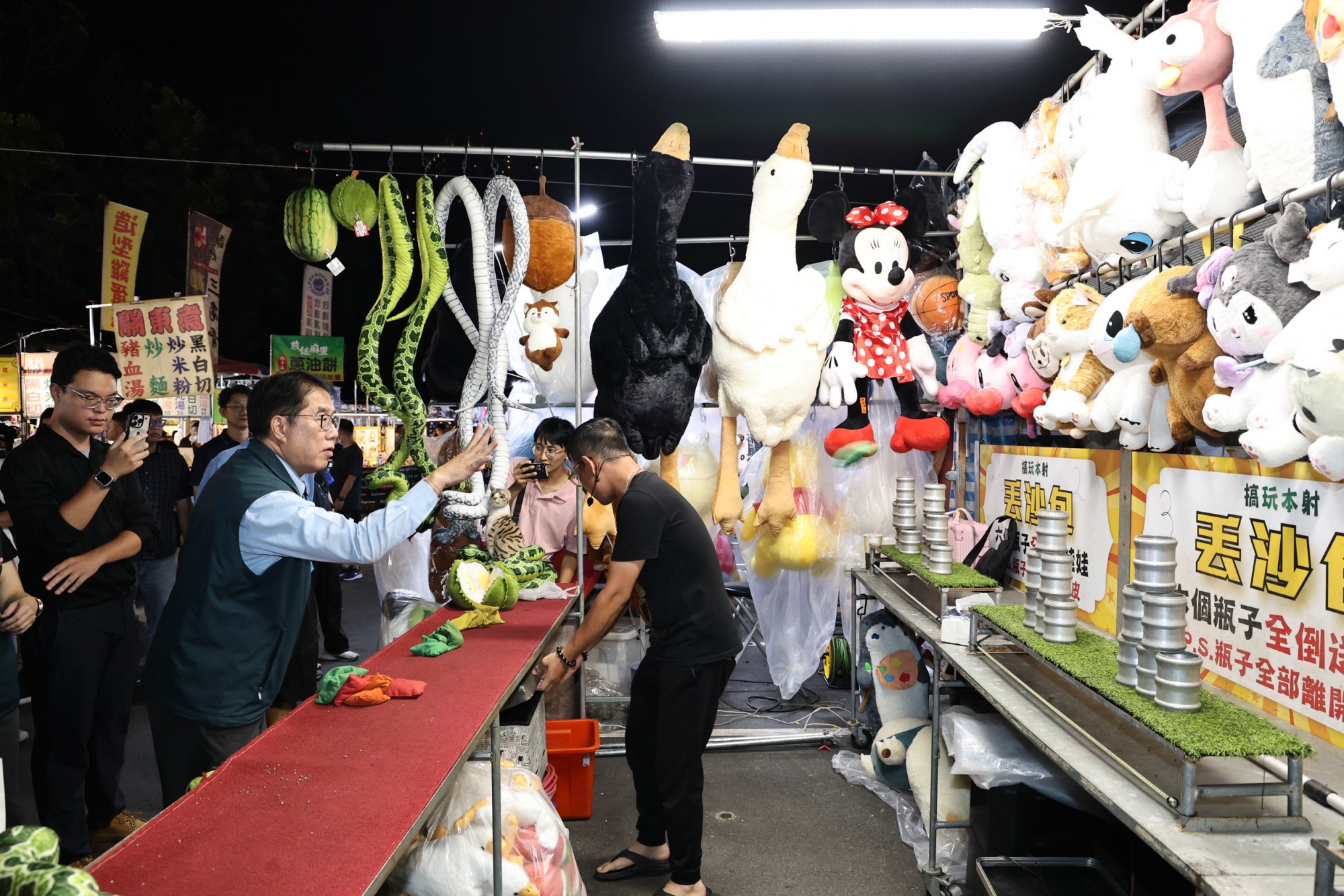 黃偉哲今晚現身夜市引起民眾的驚呼,許多市民也把握機會與市長合照,市長也藉機信步走訪,還買了滿手的夜市小吃,玩了投籃跟丟沙包,並且赢到一隻小布娃娃,與民同樂的態度,讓周圍人群倍感親切,許多議員服務處代表也到場,一起度過愉快的夏季夜晚。