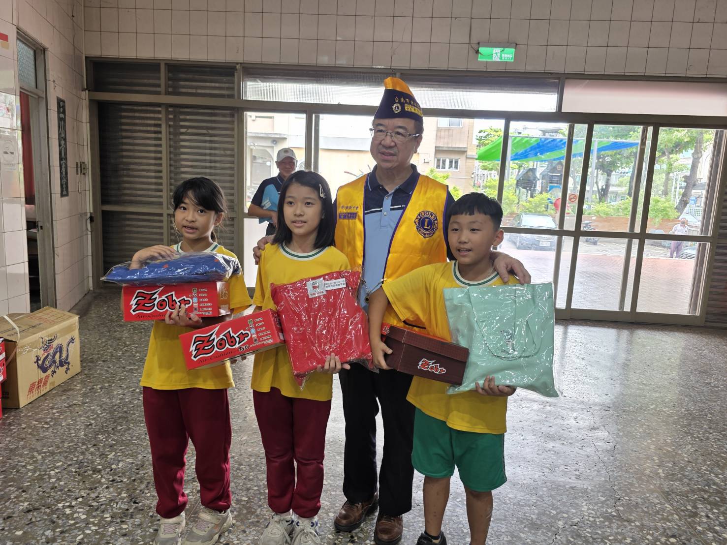 南市赤嵌獅子會捐贈文具用品及球鞋給3區 18 所國小172位風災學生
