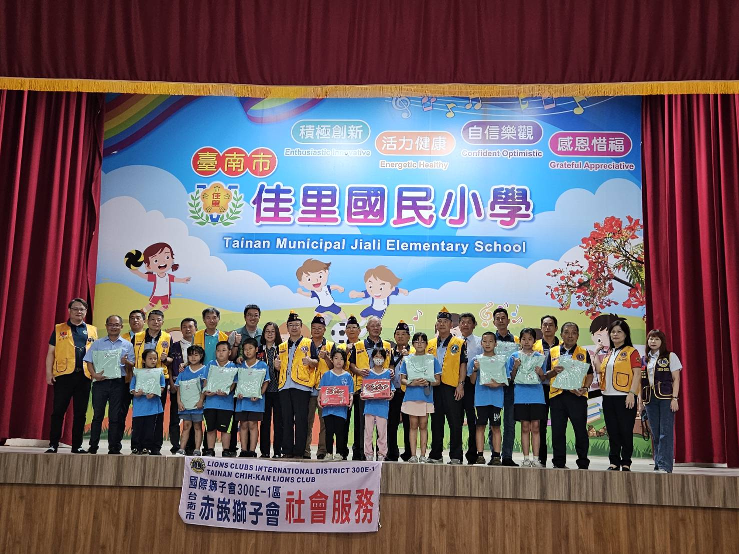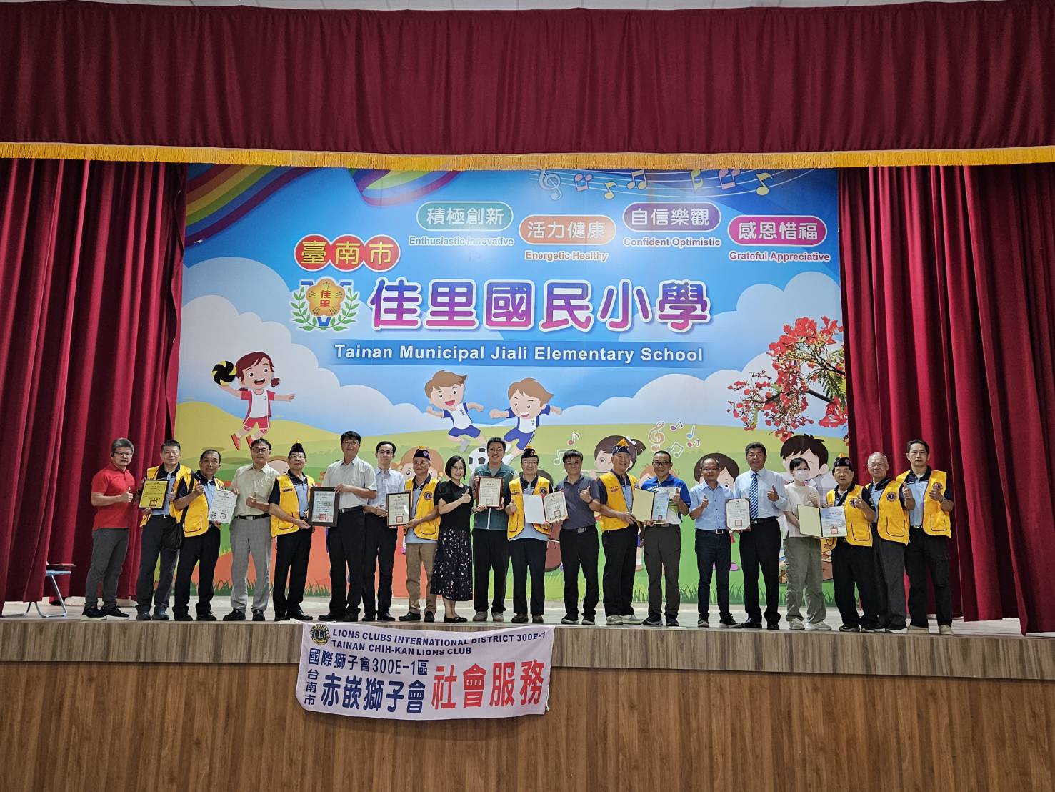 市府教育局主任秘書陳宗陽、佳里國小校長王聖欽都到場觀禮,3區18 所國小校長也回贈感謝狀給赤嵌獅子會。