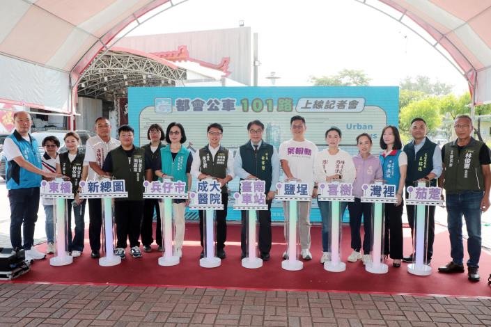 【記者陳岑博/台南報導】台南市政府推動市區公車路網重整,首條以「路線直捷、班次加密」為特色的全新路線「101都會公車」今(3)日正式通車,市長黃偉哲親自出席記者會宣布啟航。該路線自成大醫院出發,途經台南東區、北區、中西區與南區,最終延伸至高雄茄萣,全程串聯醫療院所、學校、火車站與商圈等重要節點。黃偉哲表示,希望藉由本路線的開通,提供市民更快速、穩定且舒適的通勤選擇,滿足日常通學、就醫與休閒等多元交通需求。