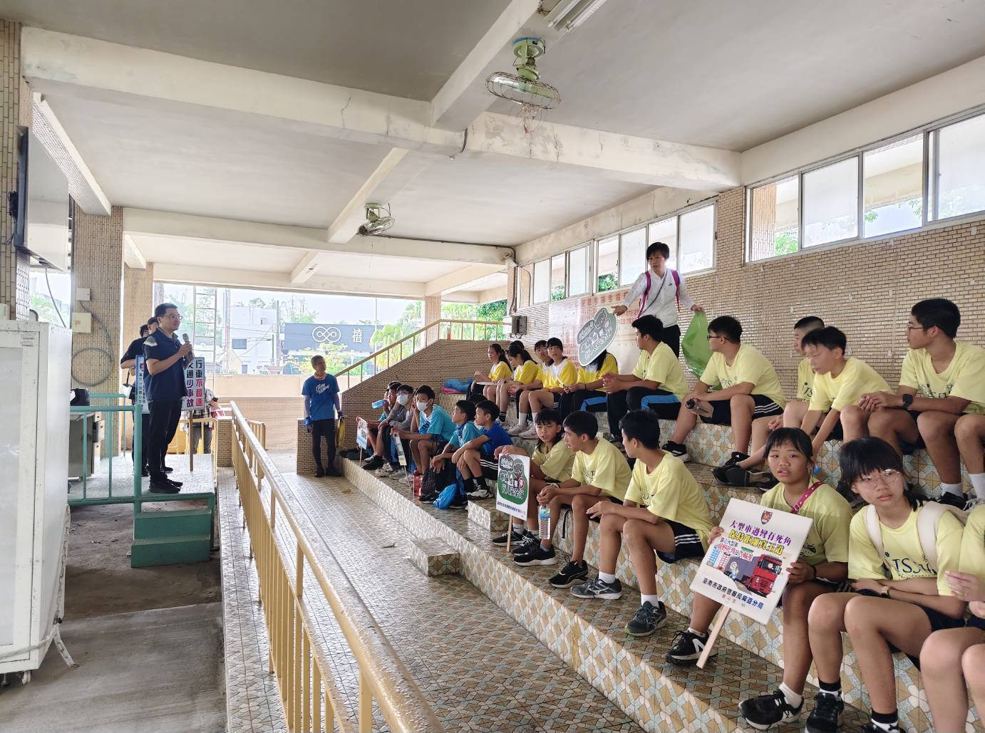 另為讓宣導融入實際情境,特別將指示牌、閃光紅燈及閃光黃燈等呈現非號誌化路口情境,並以活潑有趣的方式,由學生分別示範在支線車道與幹線車道遵行路權優先順序。現場以有獎徵答方式,提問「何者為支線?何者為幹線?」等問題,吸引同學踴躍搶答,讓同學深刻了解行經無號誌路口正確停、讓觀念,以降低交通事故風險。