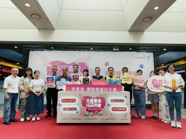 【記者田進山/台南報導】為實踐臺南市長黃偉哲「希望家園」的施政願景,打造一座關懷與幸福並重的友善城市,6日於南紡購物中心5樓夢想舞台舉辦「手護臺南 Hand有愛」視障按摩據點行銷活動熱鬧登場!特邀知名藝人徐凱希現身力挺視障按摩,期盼民眾透過實際行動支持視障按摩師穩定就業。