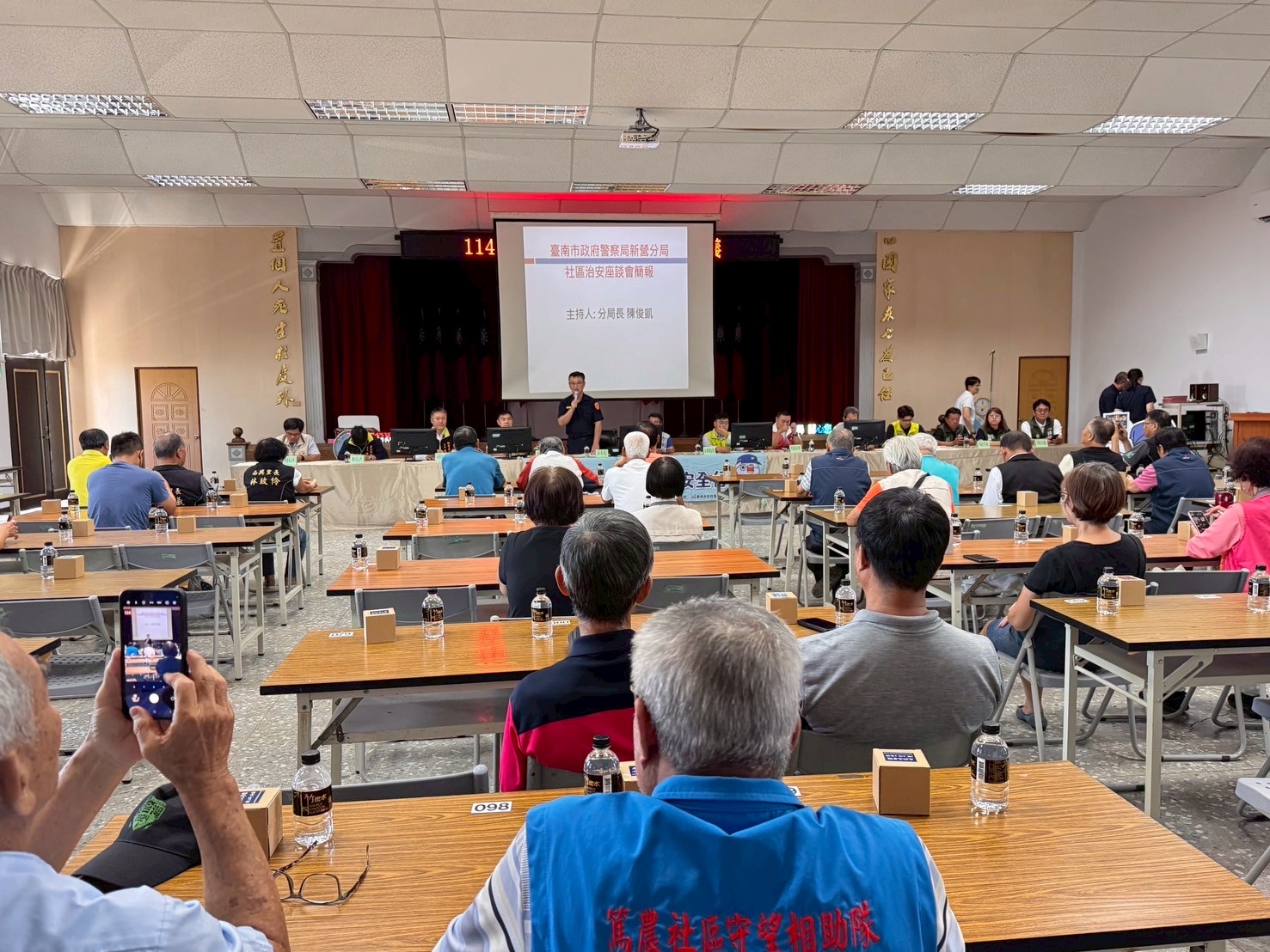【記者田進山/台南報導】台南市政府警察局新營分局辦理114年社區治安會議,結合區公所、社區發展協會及守望相助隊等單位,共同參與轄內年度盛會。會中除了向民眾展現新營分局本年度之治安重點-反詐騙,並對與會民眾宣導如何反詐騙,杜絕你我成為詐騙被害人之可能,顯示新營分局維護轄內治安之決心。