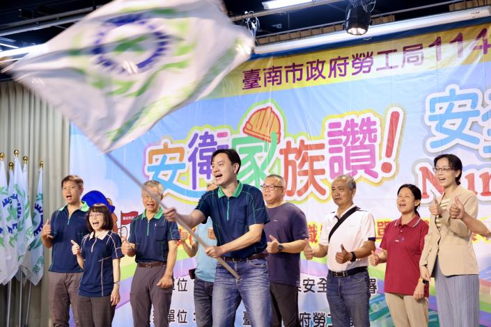 【記者黃石泉/台南報導】台南市政府勞工局今(12)日於關子嶺勞工育樂中心舉辦2025「安衛家族讚!安全健康Number One」安衛家族大會師、職安優良單位及人員表揚暨高階主管論壇,市長黃偉哲為41個安衛家族授旗,並頒發勞動部推行職業安全衛生優良單位及人員、南市績效卓越安衛家族等獎項,他感謝各事業單位努力推動職場安全及衛生,也呼籲共同推動職場健康,確保企業持續營運,保障勞工健康安全。